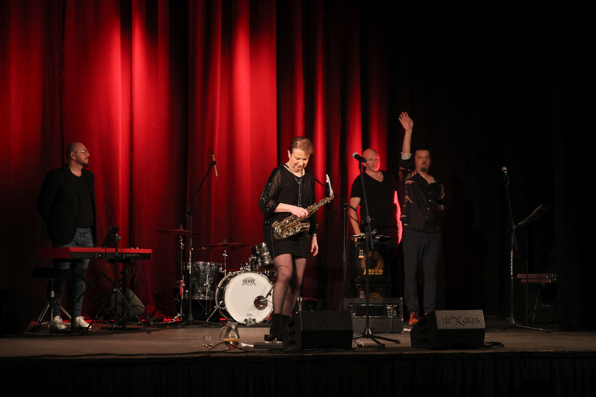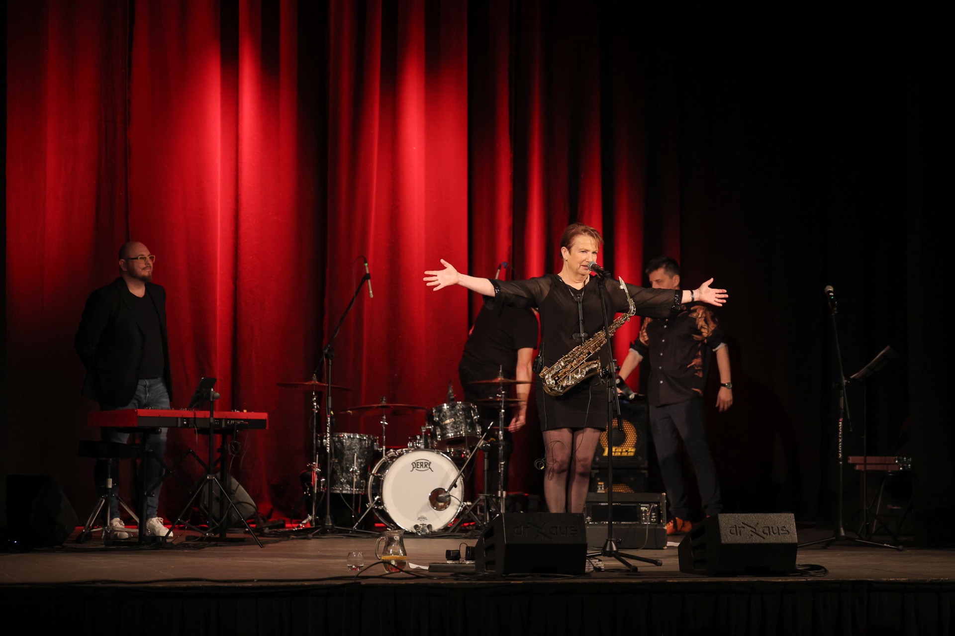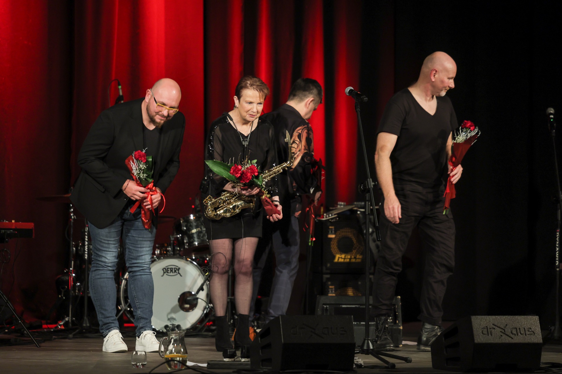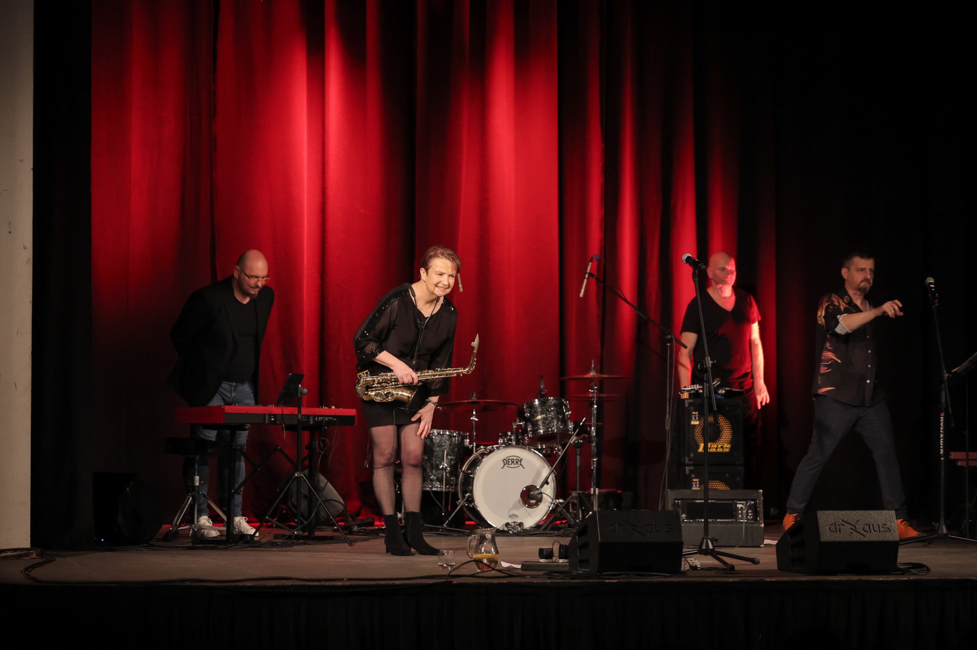 Tak było na kolejnym koncercie z cyklu Gorczyca & Przyjaciele ❤️🔥🎷 Tym razem na deskach „Strzechy” gościliśmy brytyjską saksofonistkę, wokalistkę, kompozytorkę i performerkę Patsy Gamble, która przyleciała specjalnie na ten koncert z Wielkiej Brytanii. W swojej karierze koncertowała m.in. z Mickiem Jaggerem, Rodem Stewartem i Glorią Gaynor, a w ostatni dzień listopada, dla raciborskiej publiczności zagrali z nią: Łukasz Gorczyca (bas), Roman Jońca (klawisze) i Tomek Dominik (perkusja).